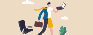 Hybrid work after covid-19 crisis, employee choice to work remotely from home or on site office for best productivity and result concept, businessman with hybrid cloth work both from home and office. The retirement landscape – hybrid working changes the scene 11th November 2025